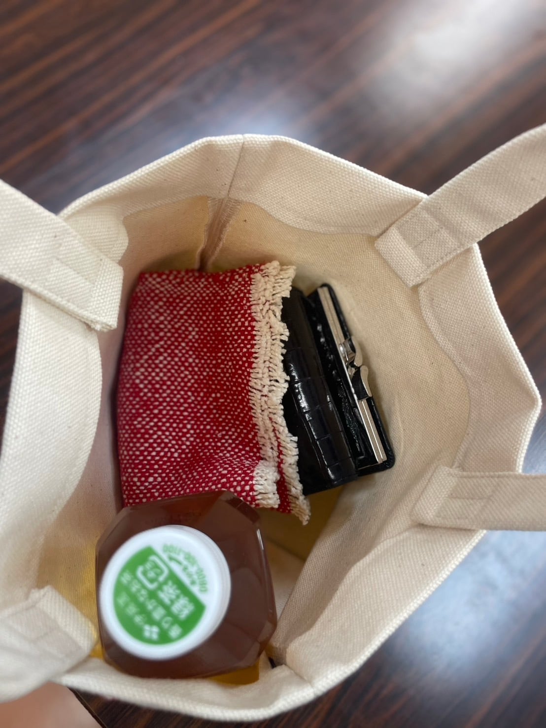 お財布やスマートフォン、ハンカチ、水筒などを入れるのにちょうどサイズで、