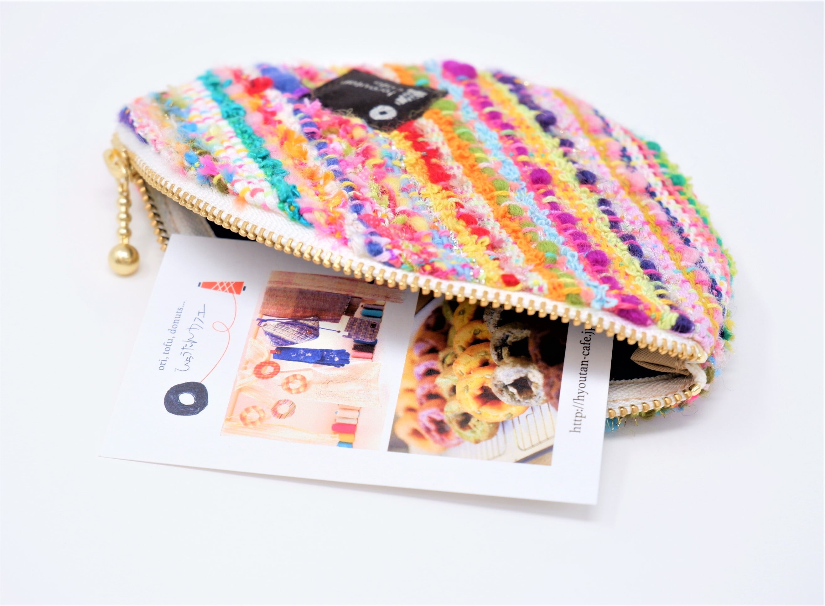 ※カラフル織りは作家が決まりなく、自由に織っています。同じ生地から作っても一点一点表情が異なり、写真と同一の商品が届くわけではない点をご了承ください。
