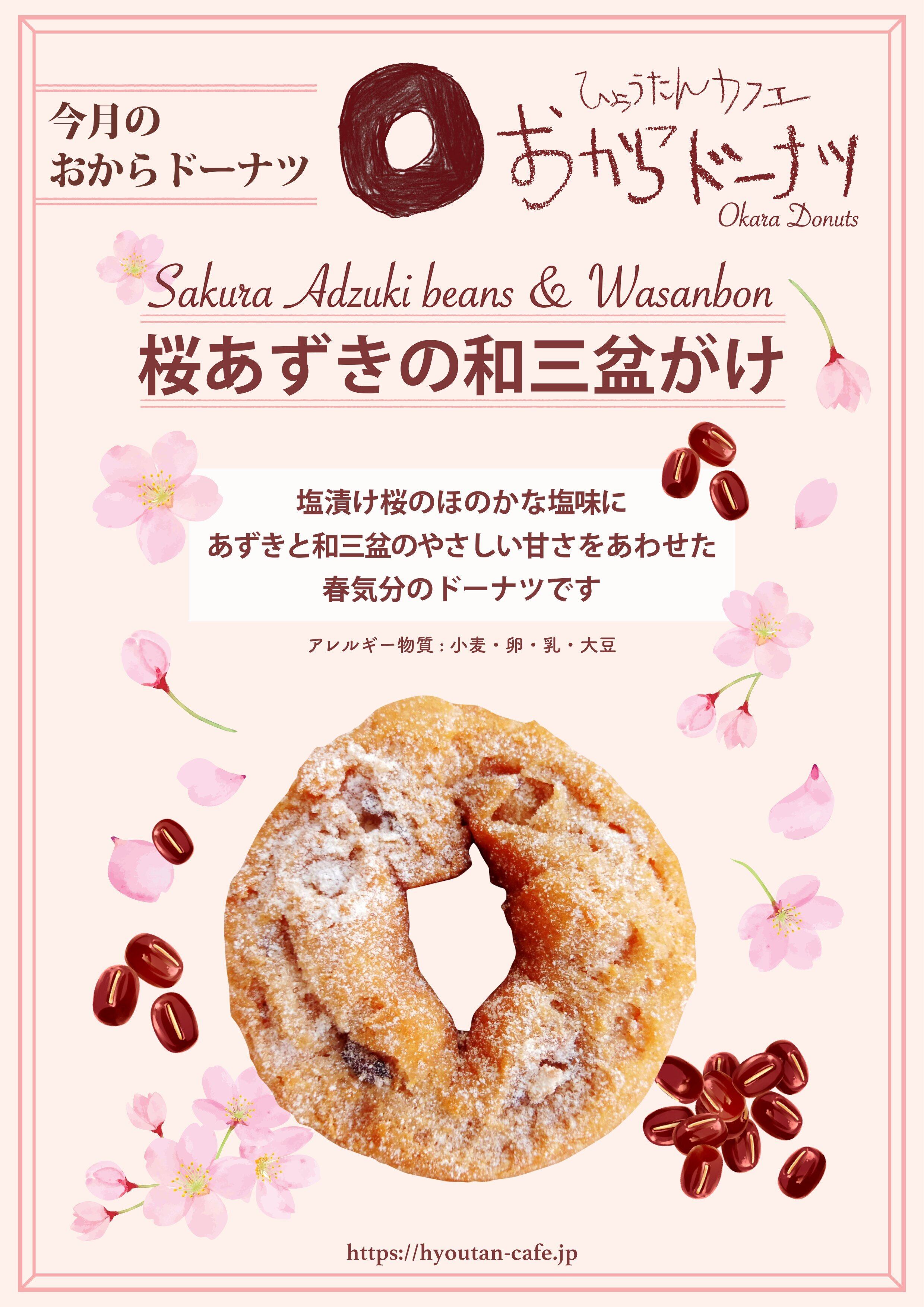 原材料名 小麦粉(国内製造)、豆乳、卵、きび砂糖、おから、甘納豆(砂糖、大納言小豆,還元水飴)、バター、桜ペースと(砂糖、水あめ、桜花塩漬、桜葉塩漬、梅酢)、桜花の塩漬け(八重桜、食塩、梅酢)、サクラパウダー(デキストリン、桜ペースト、寒天、砂糖)、植物油脂、食塩/膨張剤,コチニール色素,pH調整剤(一部に小麦、大豆、卵、アーモンド、乳成分を含む)